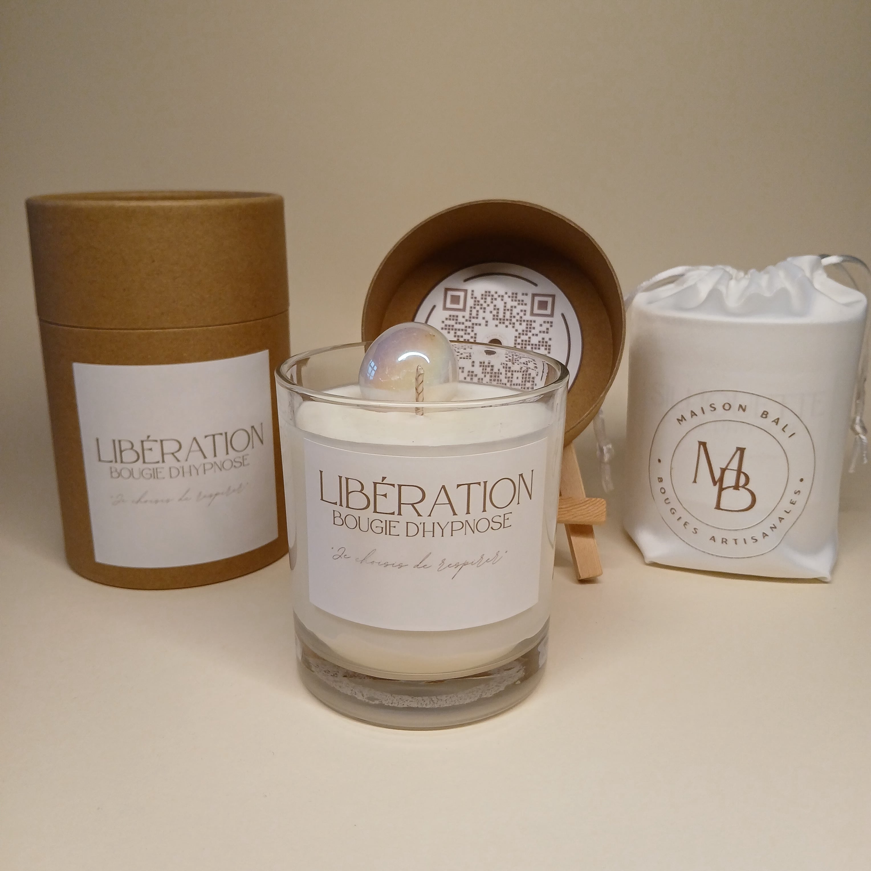 Bougie Libération - Hypnose Audio (QR code) - Maison Bali Bougie Libération - Hypnose Audio (QR code) - Maison Bali